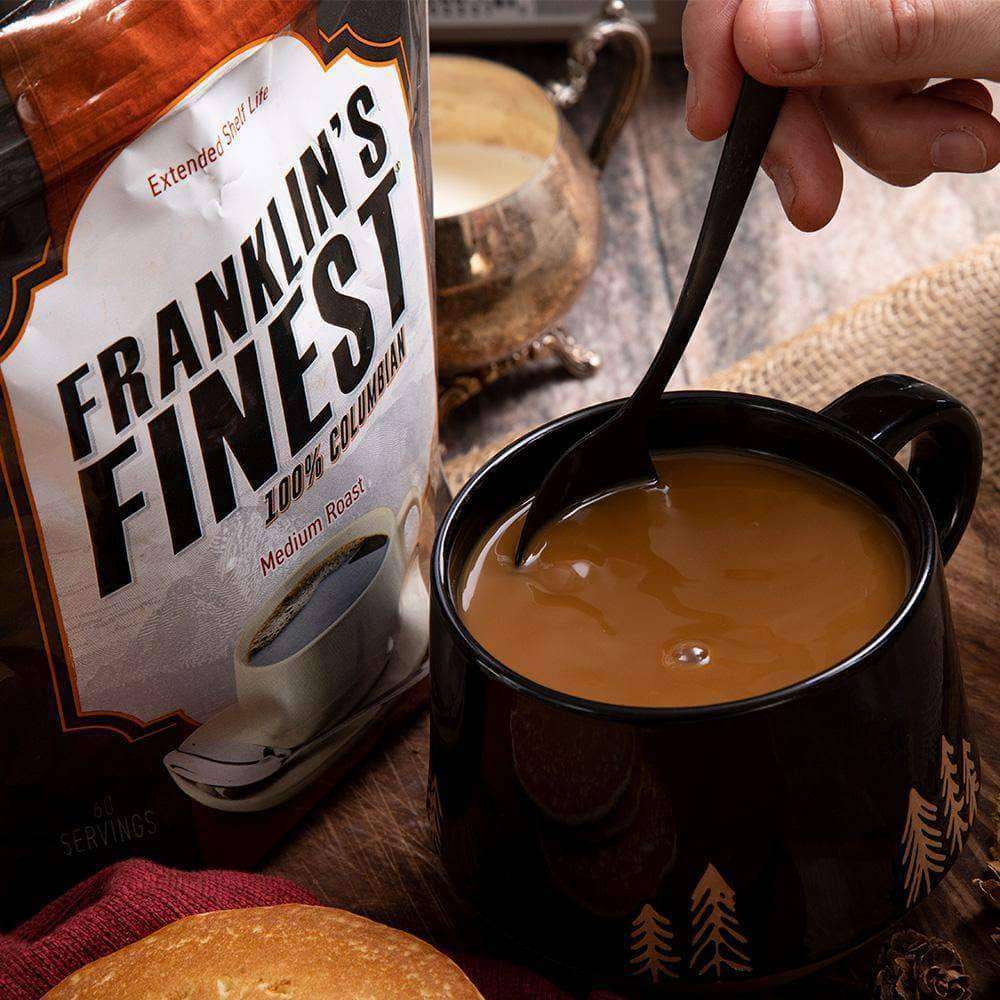 It's the first ever emergency survival coffee with a true, up to 25-year shelf life! This kit provides a one-year supply of flavorful Franklin's Finest Coffee for one person. It's conveniently packaged in twelve resealable, 60 serving heavy-duty 4 layer zipper pouches for a total of 720 servings.
