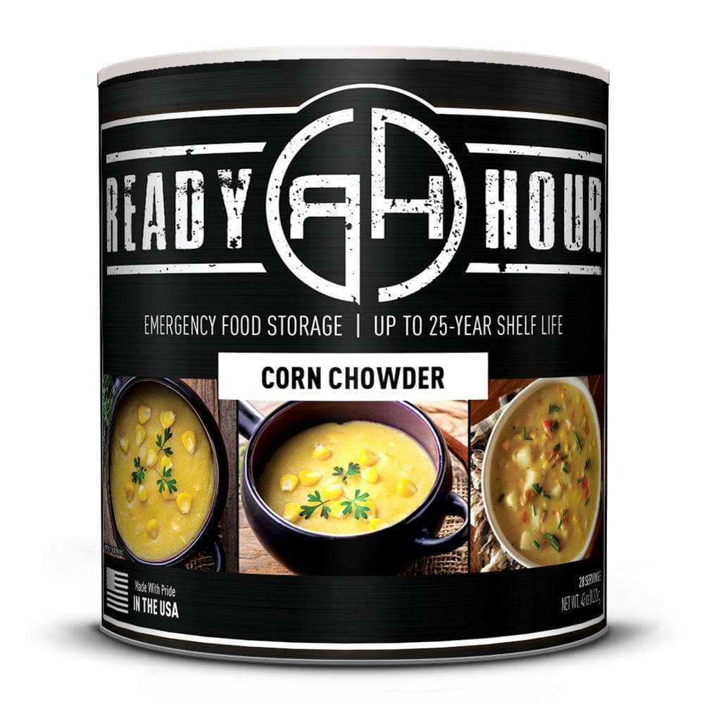 A tried and true treat any time, Ready Hour Corn Chowder provides life-sustaining sustenance and comfort in an emergency. While others are storming half-empty grocery stores for whatever is left, you and your family will have the quick and easy meals you love the best. This item comes in a big #10 can size, about five times the size of a normal soup can. Weighs 2.8 pounds.