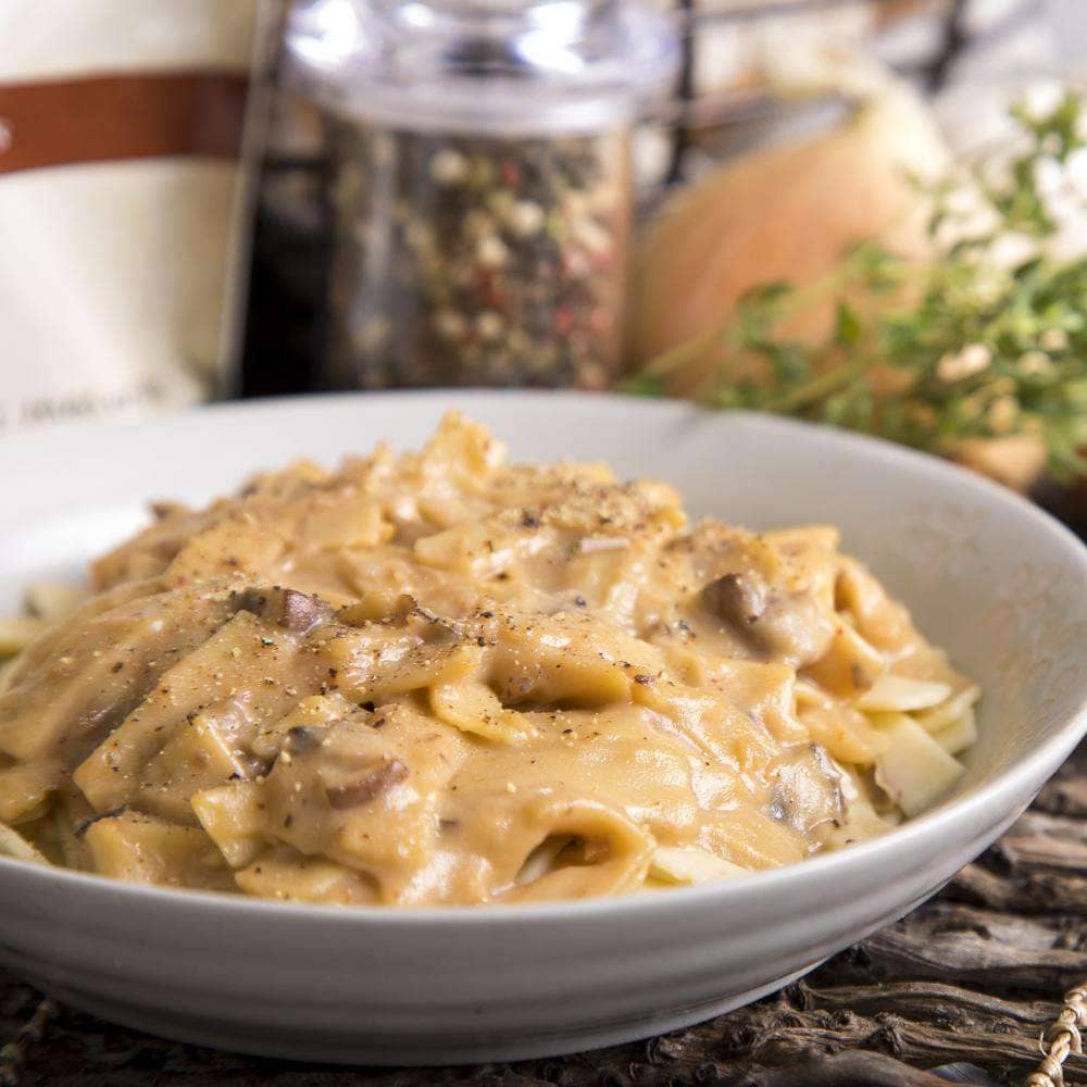 Tender noodles. Savory and creamy mushroom broth. Comfort anytime.