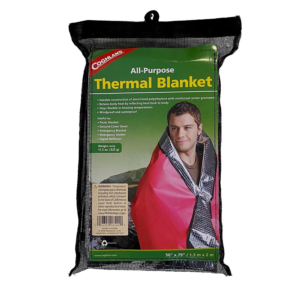 Thermal blanket size: 50" x 79" (127 x 200.6 cm) Weight: 12 oz. (340 g)