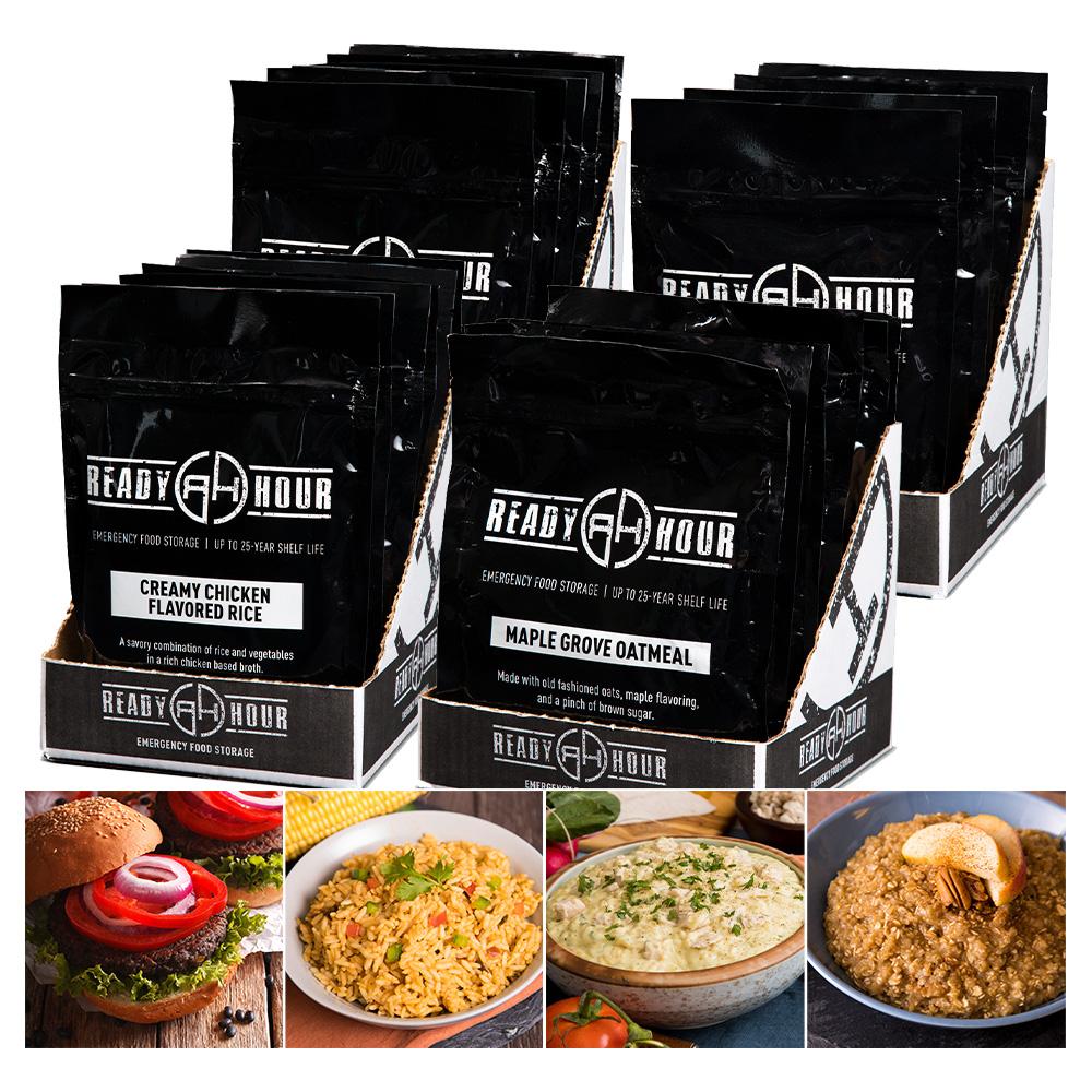 With 140 servings, and this variety of foods, you'll be set when grocery store shelves are empty, or even take them camping or hiking with you for a quick meal.