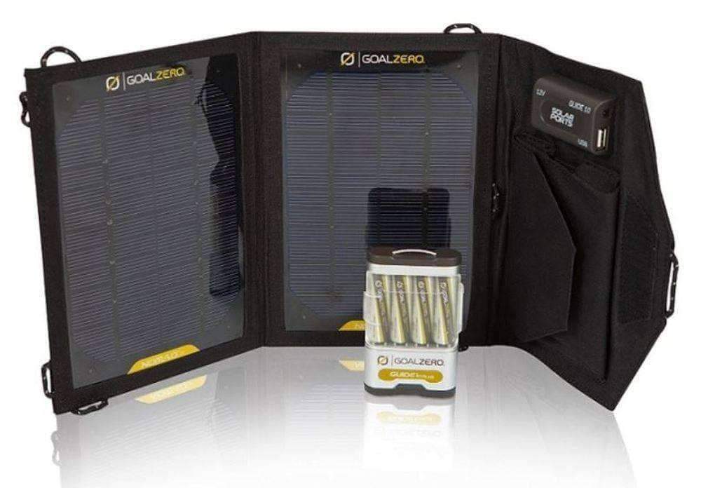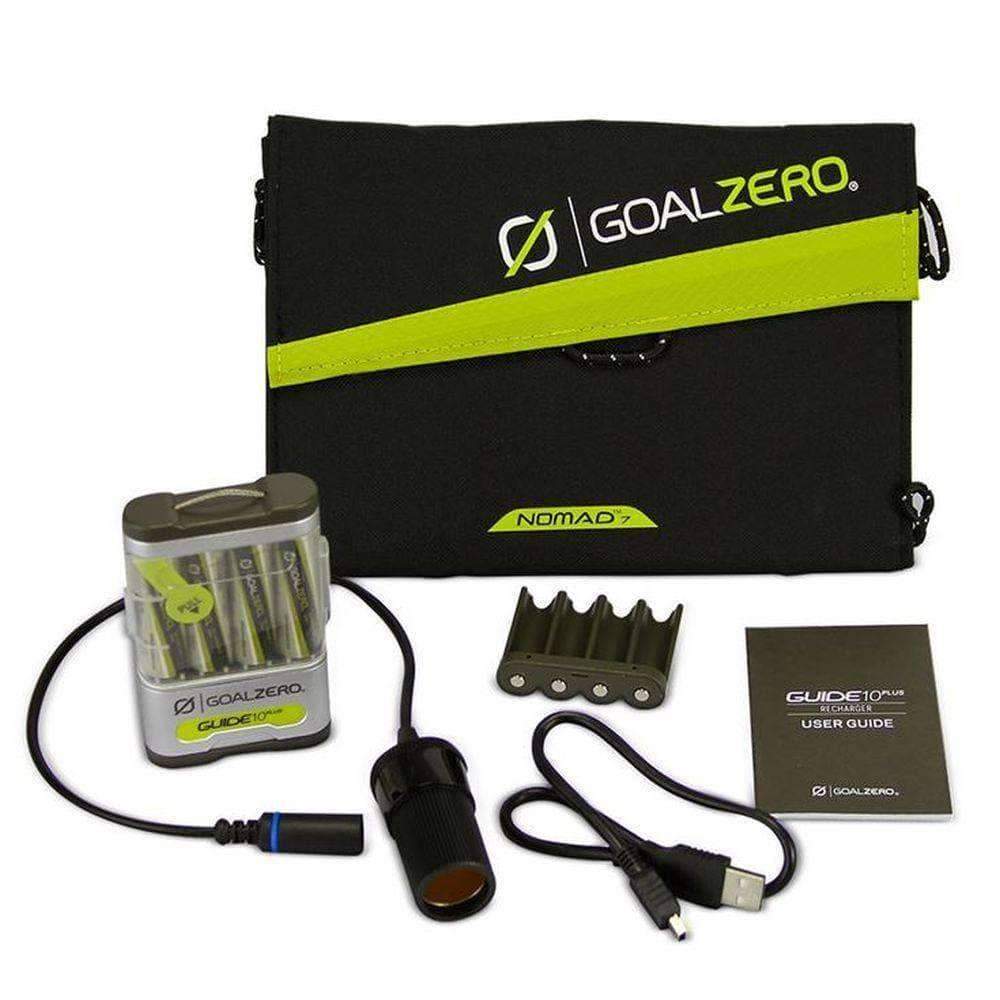 1 x Guide 10 Battery Pack 1 x Nomad 7 Solar Panel 1 x Ultra Charge Solar Cord 1 x 12V cigarette adapter 1 x AA rechargeable batteries (4 pack) |