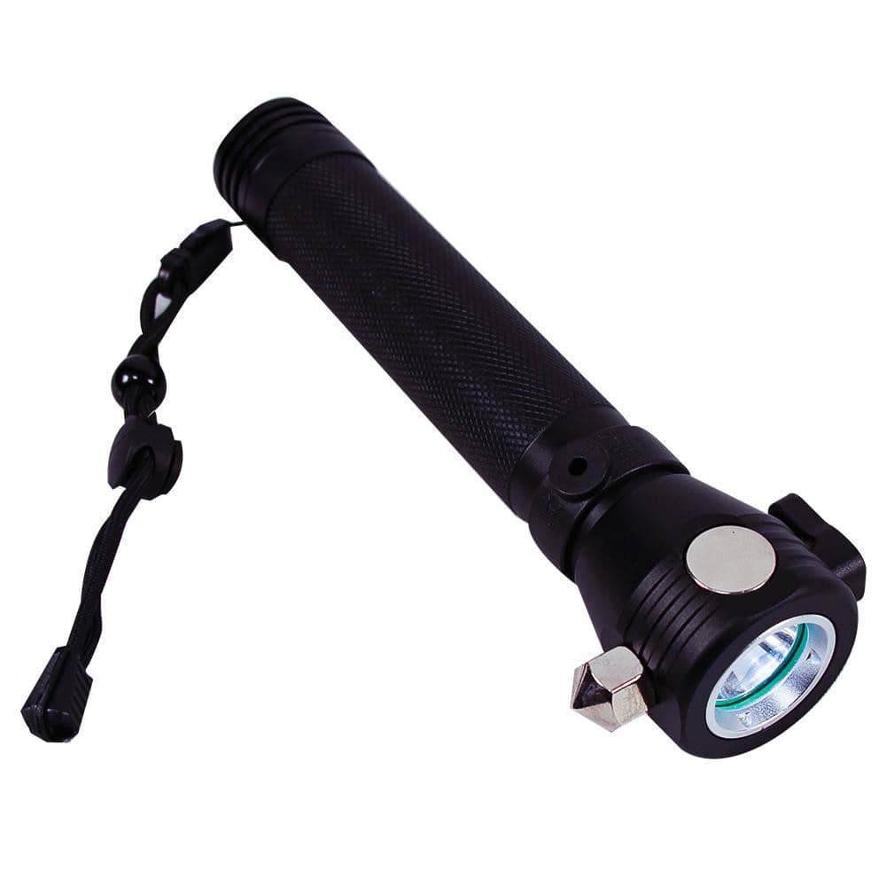Caution: This flashlight contains sharp edges (seat belt/rope cutter).