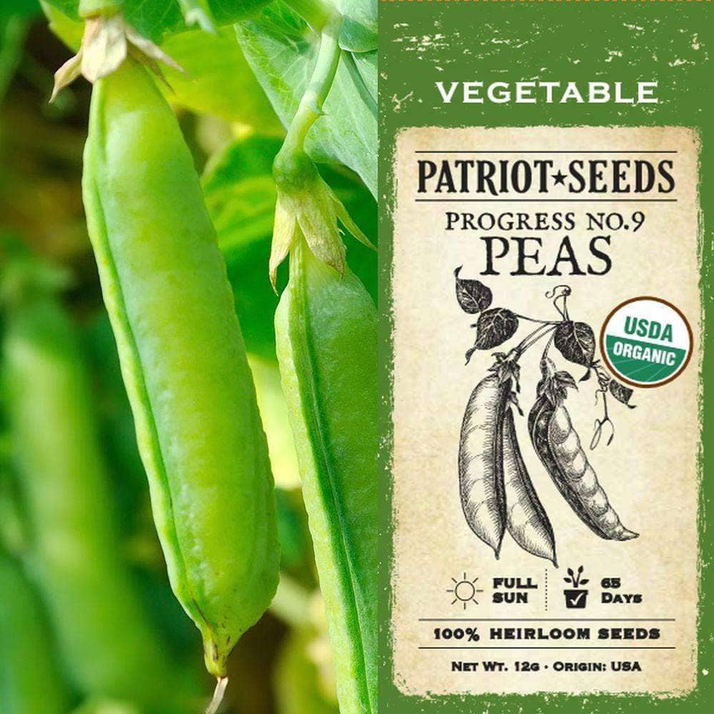 Progress No. 9 is a hardy, wilt-resistant pea variety that can provide a bountiful harvest in your garden. Peas are a great source of plant-based protein and can be eaten fresh, dried or frozen for long-term storage. Grow Organic Peas such as Progress No. 9 in your garden using seeds from Patriot Seeds and declare your food independence. Our pea seeds are 100% heirloom. You can store the unused seeds for 5+ years in their heavy-duty packages.