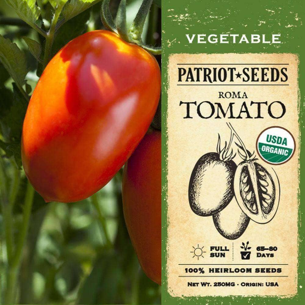 Roma tomatoes can be used in sauces, slow roasted, or eaten raw. Grow this versatile plant from Patriot Seeds for nutritious, Non-GMO, certified organic Roma Tomatoes in your own garden. Patriot Seeds are open-pollinated and can be grown, harvested, and replanted endlessly. They are friendly to most growing regions, too. When you're ready to declare your food independence, buy Patriot Seeds.