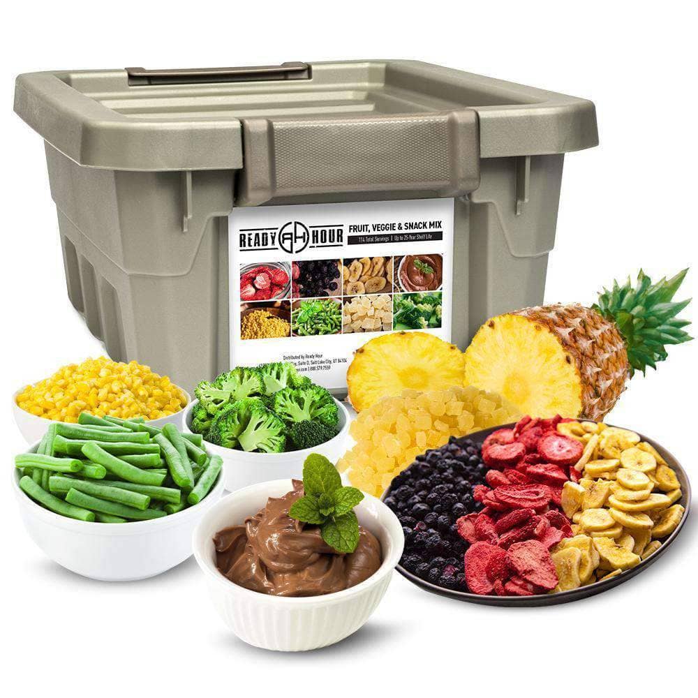 Ready Hour has set the industry standard for for delicious and nutritious emergency food supplies. The Fruit, Veggie & Snack Mix provides 116 servings of healthy, delicious fruits, vegetables and snacks that last up to 25-years in storage.